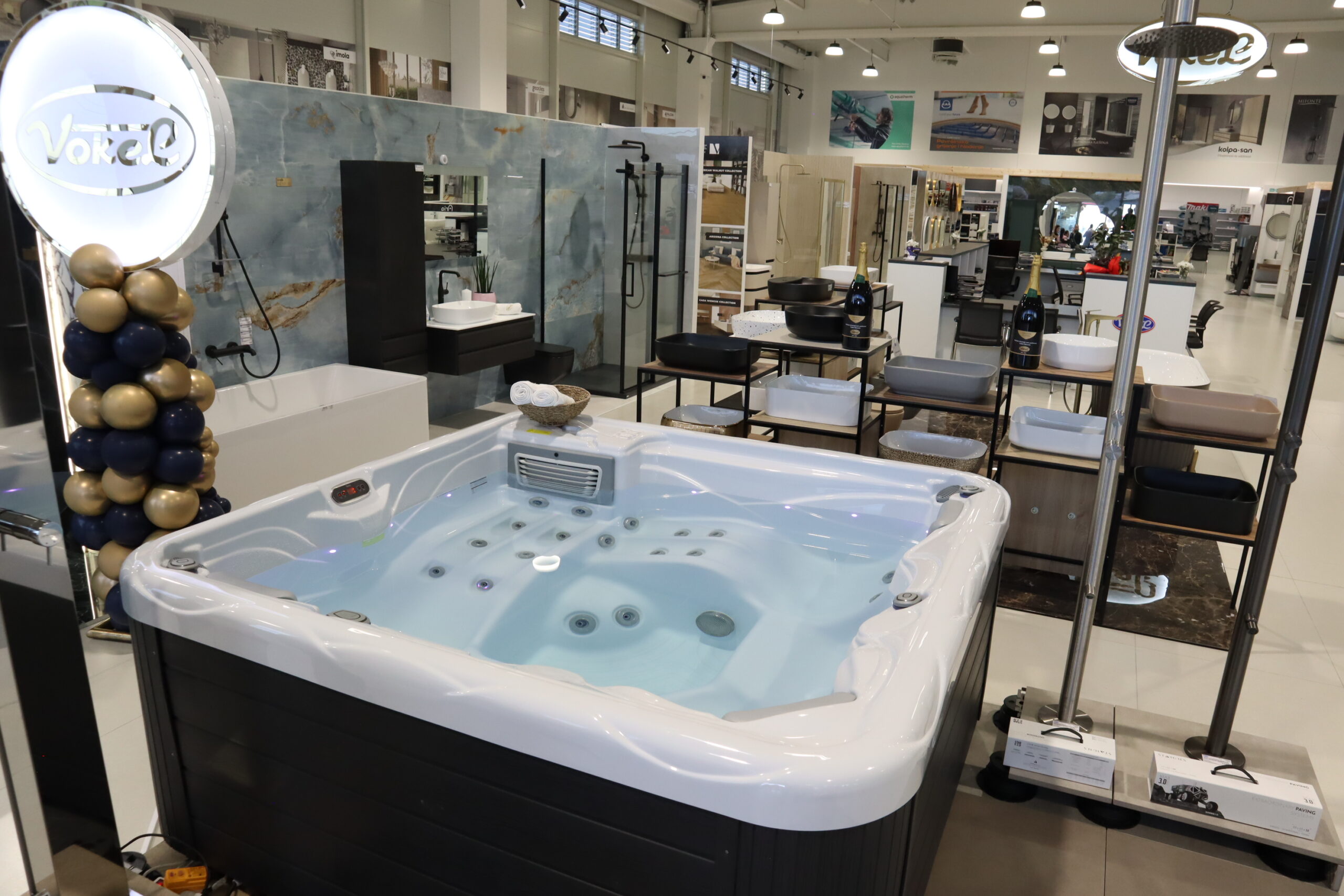 На 2000 квадратних метара изложбено-продајног салона посјетиоци ће моћи пронаћи широк асортиман водећих свјетских брендова из области керамике, санитарија, водоматеријала, опреме за централно гријање и климатизацију, ламината, паркета и плоча за уређење дворишта.