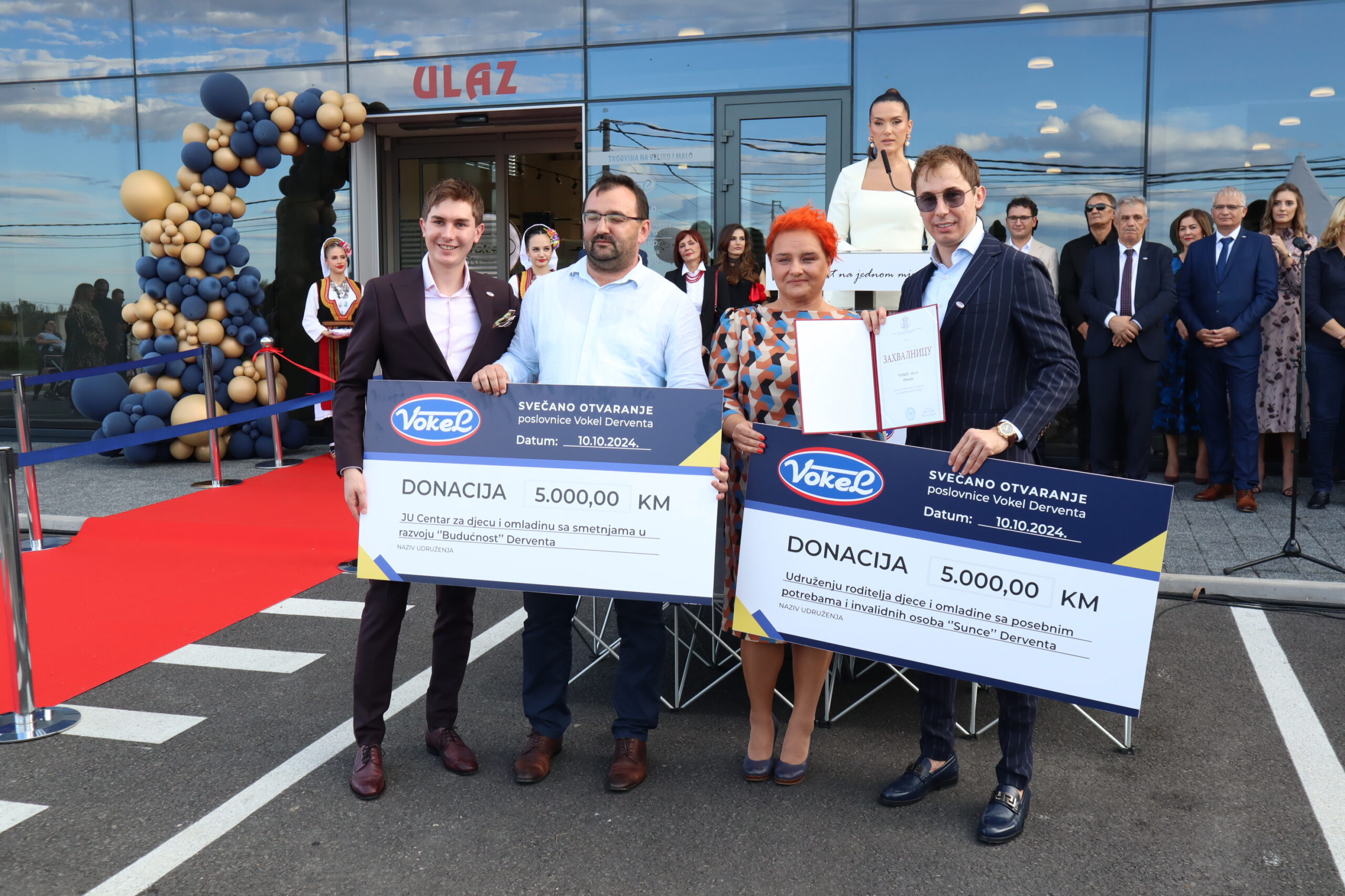 Отварање нове „Вокелове“ пословнице обогатило је и хумано дјело компаније у знак солидарности и подршке и то кроз донацију чекова у вриједности од по 5.000 КМ Удружењу родитеља дјеце и омладине са посебним потребама и инвалидних особа „Сунце“ и Центру за дјецу и омладину са сметњама у развоју „Будућност“.