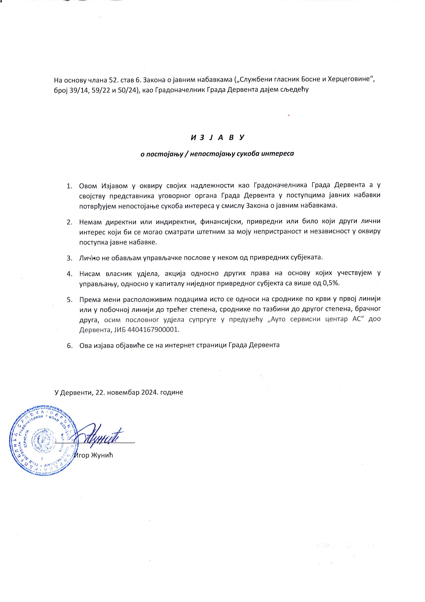 Изјава о постојању/непостојању сукоба интереса – Градоначелник